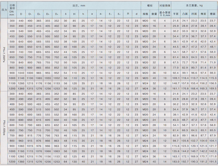 長頸對焊法蘭PN=1.0MPa~1.6MPa JB/T4703-2000(壓力容器法蘭易優先采用本標準法蘭)