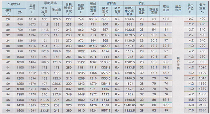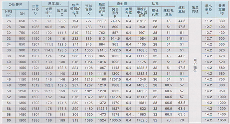大口徑高壓對焊法蘭的規格參數